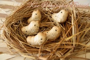 Sungguh berbeda deh dengan style foto teman2 yang rapih2 tertata dalam piring ditemani teh dan kopi… Minggu pagi tadi, saat akan “photo session” dgn hasil Kue Bebangket ini, sungguh “membangkitkan” semangat seluruh keluargaku karena semua sumbang saran buat property nya… Alhasilnya burung-burung imut ini disetujui untuk difoto dalam sarang jerami buatannya si Mbak.. Styling yang agak nyeleneh… but it’s fun! hahaha